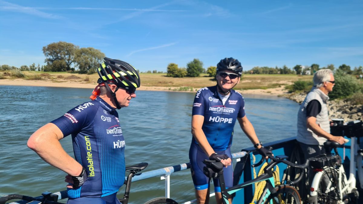 De route vervolgde zich door een mooi poldergebied, waar we twee keer een oversteek maakten via een pond en een erg druk fietspondje richting Millingen aan de Rijn.